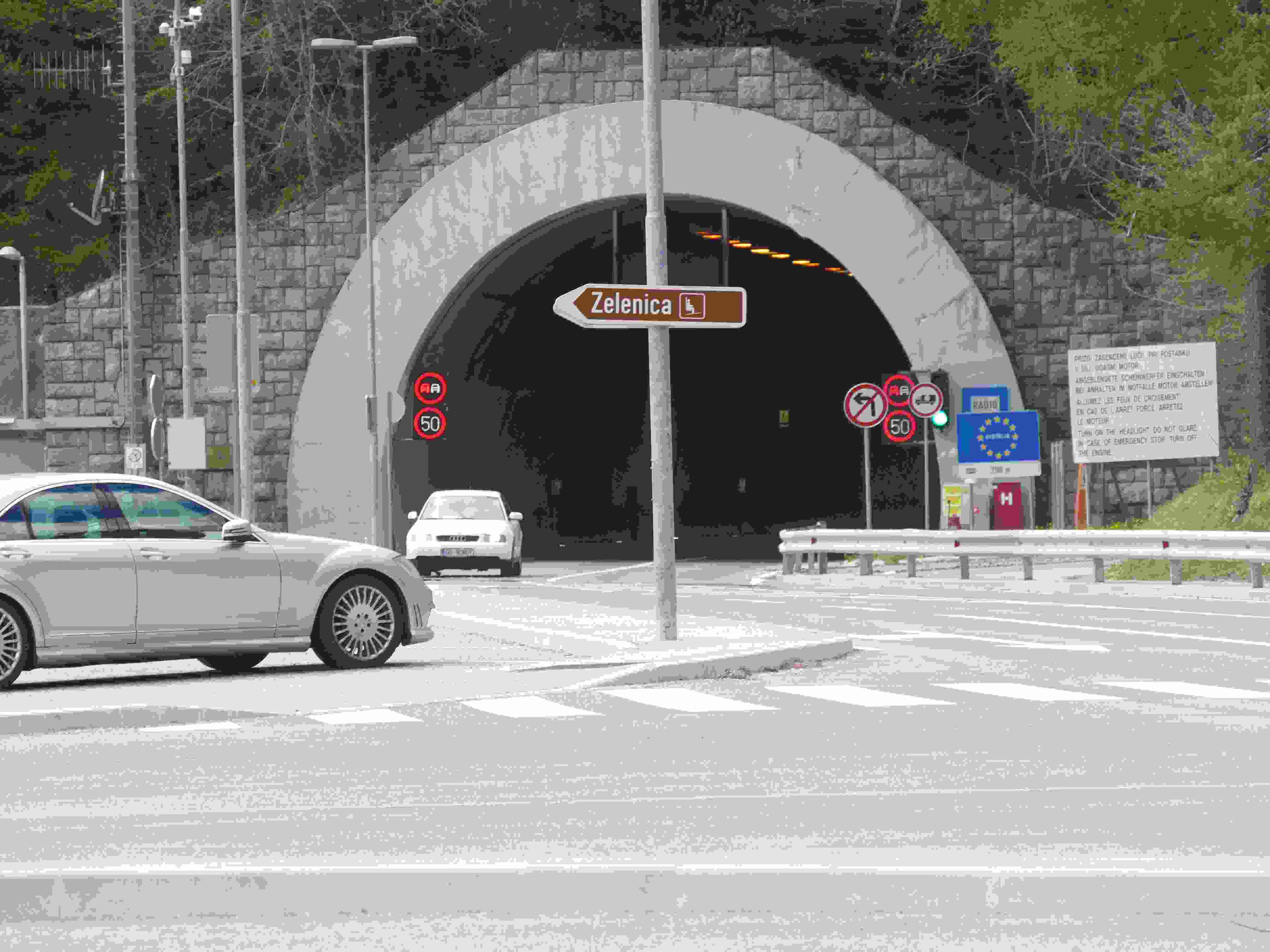 The Border between Austria and Slovenia is in a tunnel in the Loibl Pass.