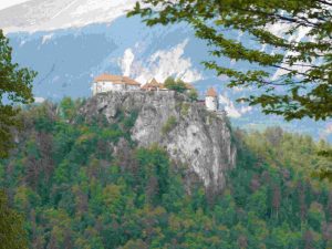 The lake is situated in a picturesque environment, surrounded by mountains and forests. The medieval-era Bled Castle stands above the lake on the north shore, and there is a church in the middle of the lake.